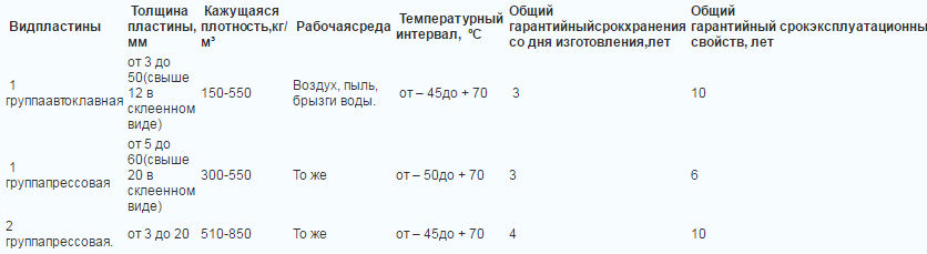 * Автоклавная. При толщине от 3 до 75 мм плотность материала составляет 150-550 кг/м3.