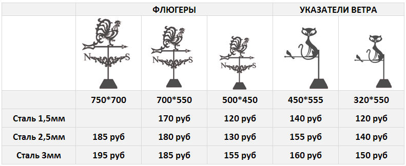 Изменение цены возможно при изменении комплектности при согласовании в производство флюгера под заказ.